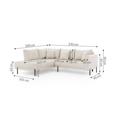 - cu tapițerie din chenilleCu colț pe partea stângă/în formă de ”L”BejPotrivit pentru animale de companie/rezistent la peteCu 4 locuriLățime 233 cm