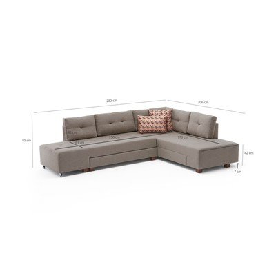 Colțar Manama- extensibil, cu colț pe partea dreaptă/în formă de ”L”, rezistent la pete, bej, cu 5 sau mai multe locuri, lățime 280 cm, adâncime 206 cm, adâncime șezut 63 cm