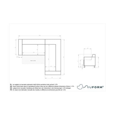 Cu colț pe partea dreaptă/în formă de ”L”