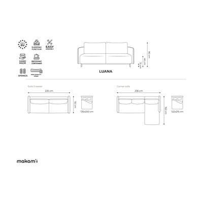 - extensibil/cu spațiu de depozitare, cu colț pe partea dreaptă/cu șezlong, rezistent la apă, bej, cu 3 locuri, lățime 236 cm