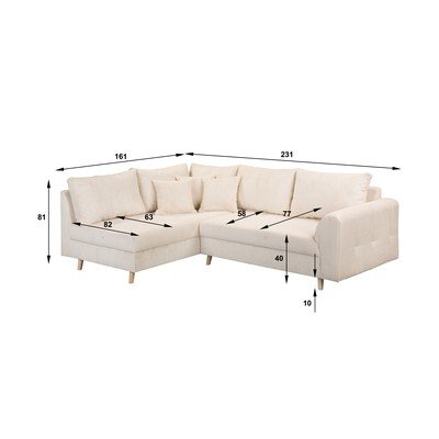 Colțar Ariella- cu tapițerie din catifea reiată , cu colț pe partea stângă/în formă de ”L”, bej, cu 3 locuri, lățime 231 cm, adâncime 161 cm, adâncime șezut 58 cm