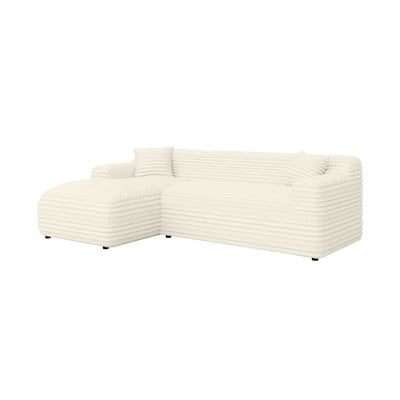 Colțar Martin- cu tapițerie din catifea reiată , cu colț pe partea stângă/cu șezlong, crem, rezistent la apă/rezistent la pete, cu 3 locuri, lățime 256 cm