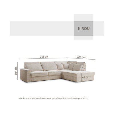 Colțar Kirou- cu tapițerie din chenille, cu colț pe partea dreaptă/în formă de ”L”, crem, cu 4 locuri, lățime 311 cm, adâncime 225 cm, adâncime șezut 55 cm