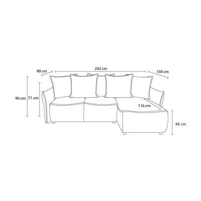- extensibil/cu spațiu de depozitareCu colț pe partea dreaptă/cu șezlongCremCu 3 locuriLățime 242 cm