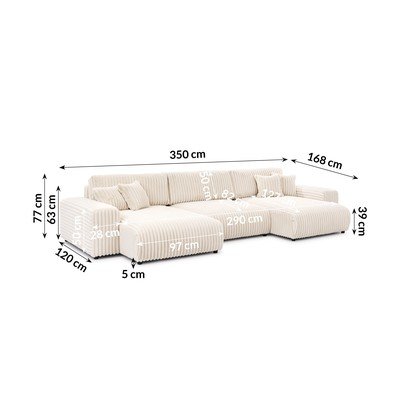- cu tapițerie din catifea reiată Extensibil/cu spațiu de depozitareÎn formă de "U"CremRezistent la apă/rezistent la peteCu 5 sau mai multe locuriLățime 350 cm