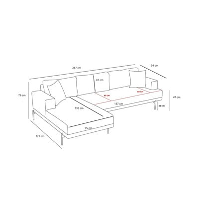 - cu colț pe partea dreaptă/cu șezlong, gri antracit, cu 4 locuri, lățime 287 cm, adâncime 171 cm, adâncime șezut 60 cm