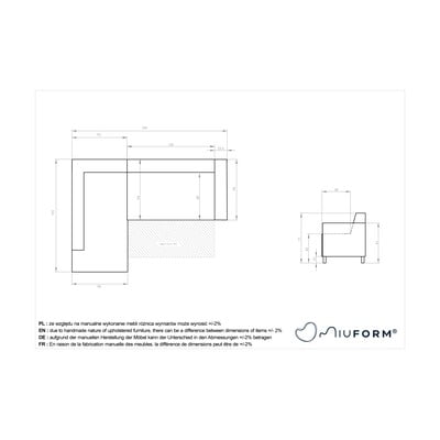 Cu colț pe partea stângă/în formă de ”L”