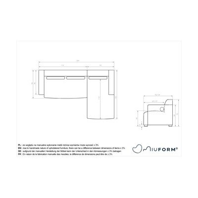 - cu colț pe partea dreaptă/cu șezlongGri închisCu 3 locuriLățime 264 cm