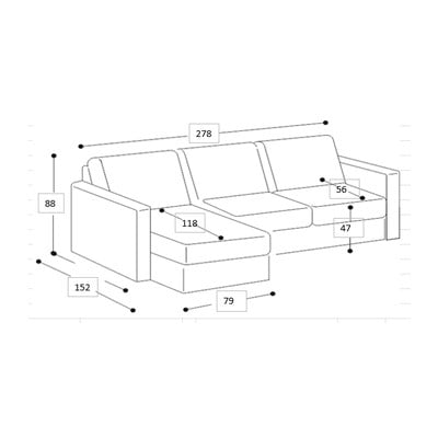 - cu colț pe partea dreaptă/cu șezlongGri deschisCu 4 locuriLățime 278 cm
