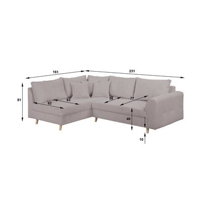 - cu tapițerie din catifea reiată , cu colț pe partea stângă/în formă de ”L”, gri, cu 3 locuri, lățime 231 cm