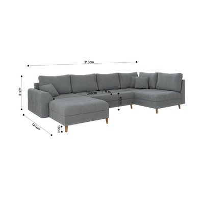 - cu tapițerie din țesătură bouclé, cu colț pe partea stângă/în formă de "U", gri, cu 5 sau mai multe locuri, lățime 310 cm