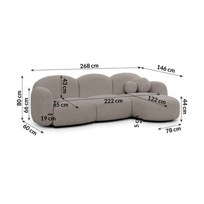 - cu tapițerie din țesătură boucléCu colț pe partea dreaptă/cu șezlongGriRezistent la apă/rezistent la peteCu 4 locuriLățime 268 cm