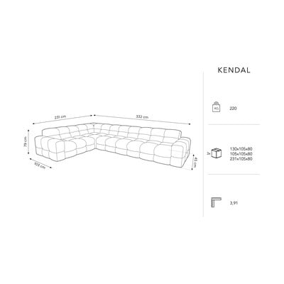 Canapeaua de colț Kendal va domina interioarele moderne. Suprafața tricotată din catifea este moale și plăcută la atingere. Țesătura este, de asemenea, foarte rezistentă, ceea ce face din canapea un partener excelent pentru proprietarii de animale de companie.