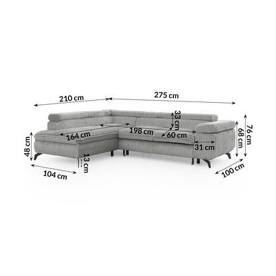 - cu tapițerie din catifea reiată Reglabil/extensibil/cu spațiu de depozitareCu colț pe partea stângă/în formă de ”L”Gri deschisPotrivit pentru animale de companie/rezistent la peteCu 4 locuriLățime 275 cm