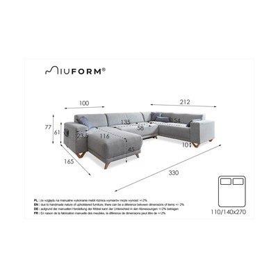 - extensibil/cu spațiu de depozitareCu colț pe partea dreaptă/în formă de "U"Gri deschisCu 5 sau mai multe locuriLățime 330 cmAdâncime 212 cmAdâncime șezut 58 cm