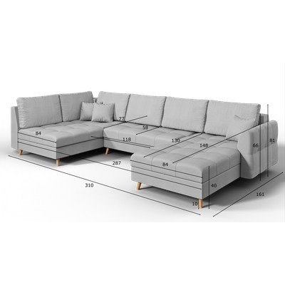- cu colț pe partea dreaptă/în formă de "U", gri, cu 5 sau mai multe locuri, lățime 310 cm