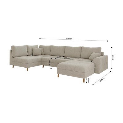 - cu colț pe partea stângă/în formă de "U", gri, cu 5 sau mai multe locuri, lățime 310 cm