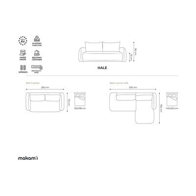 Colțar gri extensibil (cu colț pe partea dreaptă/cu șezlong) Hale – Makamii