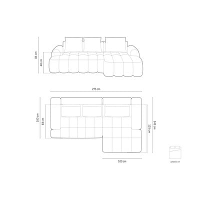 - extensibil/cu spațiu de depozitare, cu colț pe partea dreaptă/cu șezlong, gri, cu 4 locuri, lățime 275 cm