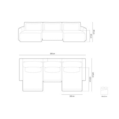 - extensibil/cu spațiu de depozitare, în formă de "U", gri, cu 5 sau mai multe locuri, lățime 340 cm