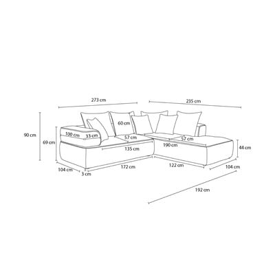 - cu tapițerie din chenille, cu colț pe partea stângă/în formă de ”L”, gri închis, cu 4 locuri, lățime 273 cm