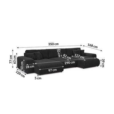 - cu tapițerie din catifea reiată Extensibil/cu spațiu de depozitareÎn formă de "U"Gri închisRezistent la apă/rezistent la peteCu 5 sau mai multe locuriLățime 350 cm