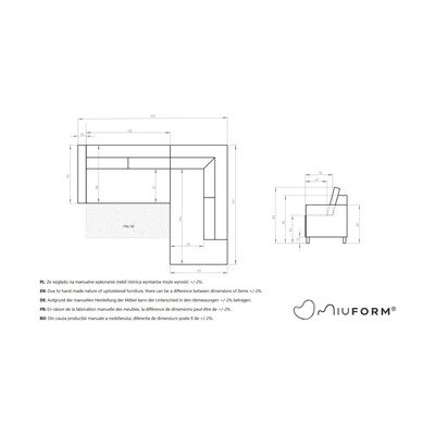 - cu tapițerie din catifea, extensibil, cu colț pe partea dreaptă/în formă de ”L”, gri închis, cu 4 locuri, lățime 237 cm