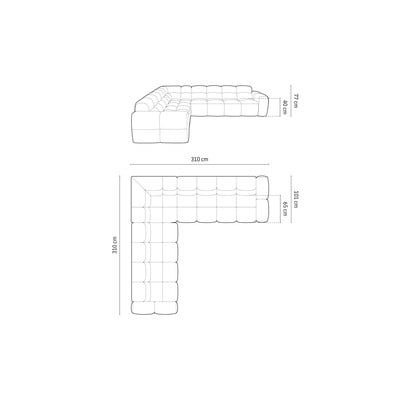 - cu colț pe partea dreaptă/cu colț pe partea stângă/în formă de ”L”, gri, cu 5 sau mai multe locuri, lățime 310 cm