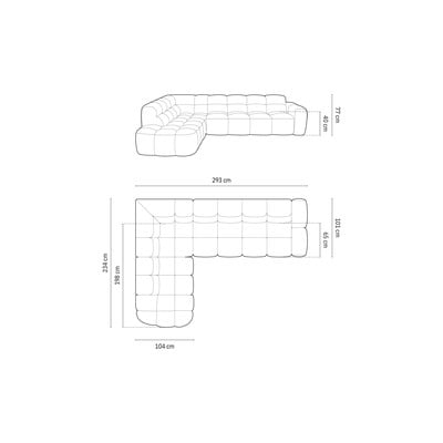 - cu colț pe partea stângă/în formă de ”L”, gri, cu 5 sau mai multe locuri, lățime 293 cm