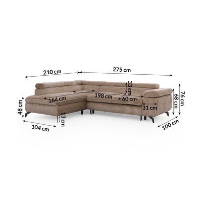 - cu tapițerie din catifea reiată Reglabil/extensibil/cu spațiu de depozitareCu colț pe partea stângă/în formă de ”L”MaroPotrivit pentru animale de companie/rezistent la peteCu 4 locuriLățime 275 cm