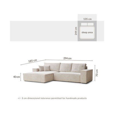 - cu tapițerie din chenilleExtensibil/cu spațiu de depozitareCu colț pe partea stângă/cu șezlongMaro deschisCu 4 locuriLățime 294 cmAdâncime 185 cmAdâncime șezut 65 cm