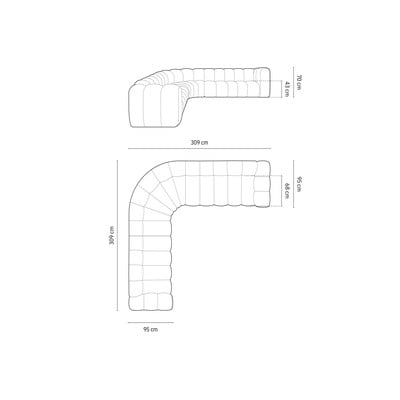 - cu tapițerie din chenilleCu colț pe partea dreaptă/cu colț pe partea stângă/cu colț variabil/în formă de ”L”BejCu 5 sau mai multe locuriLățime 309 cm