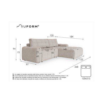 - extensibil/cu spațiu de depozitareCu colț pe partea dreaptăBejCu 3 locuriLățime 268 cmAdâncime 184 cmAdâncime șezut 56 cm
