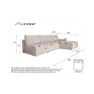 - extensibil/cu spațiu de depozitareCu colț pe partea dreaptăCremCu 3 locuriLățime 338 cmAdâncime 184 cmAdâncime șezut 56 cm