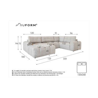 - extensibil/cu spațiu de depozitareCu colț pe partea dreaptăCremCu 4 locuriLățime 333 cmAdâncime 213 cmAdâncime șezut 56 cm