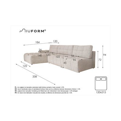 - extensibil/cu spațiu de depozitareCu colț pe partea stângăCremCu 3 locuriLățime 338 cmAdâncime 184 cmAdâncime șezut 56 cm