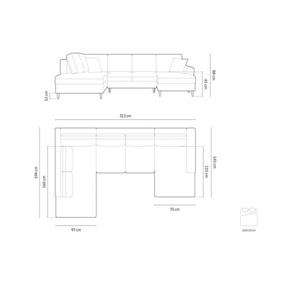 Colțar Kyoto- cu tapițerie din catifea, extensibil/cu spațiu de depozitare, cu colț pe partea stângă/în formă de "U", petrol, cu 5 sau mai multe locuri, lățime 313 cm