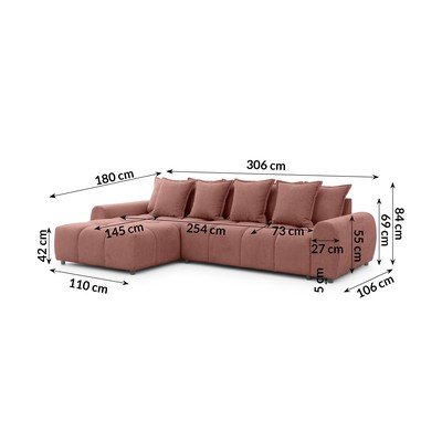 Colțar teracotă (cu colț pe partea stângă/cu șezlong) Albane – Ropez