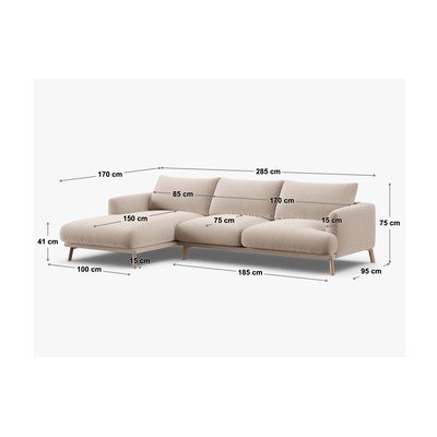 Colțar bej cu tapițerie din catifea (cu colț pe partea dreaptă/cu șezlong) Naomi – Micadoni