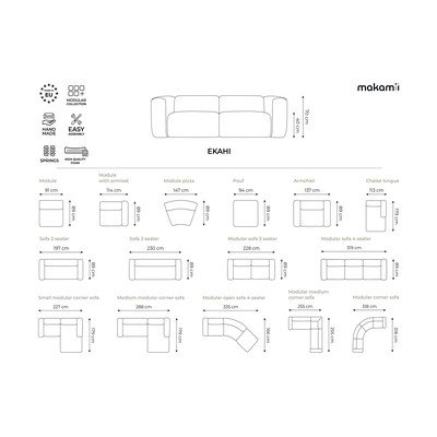 - cu colț pe partea dreaptă/cu șezlong, verde, cu 3 locuri, lățime 227 cm, adâncime 179 cm, adâncime șezut 62 cm