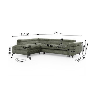 - cu tapițerie din catifea reiată Reglabil/extensibil/cu spațiu de depozitareCu colț pe partea stângă/în formă de ”L”VerdePotrivit pentru animale de companie/rezistent la peteCu 4 locuriLățime 275 cm
