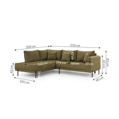 - cu tapițerie din chenilleCu colț pe partea stângă/în formă de ”L”VerdePotrivit pentru animale de companie/rezistent la peteCu 4 locuriLățime 233 cm
