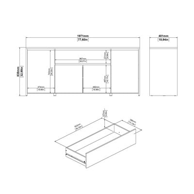 Cu dimensiuni de 197x84x48 cm, oferă mult spațiu pentru lucrurile tale, având patru compartimente închise cu rafturi și un sertar practic. Culoarea albă în combinație cu aspectul de stejar creează un efect elegant. Două dulapuri mari pe laterale și două mai mici în mijloc oferă opțiuni variabile de depozitare.