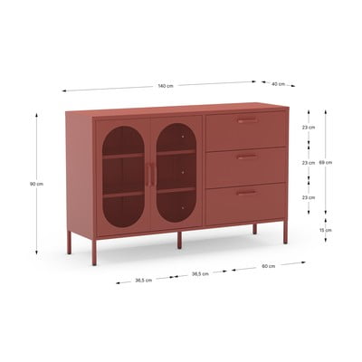 - din metal, finisaj suprafață: acoperit cu pulbere, cărămizie, lățime 140 cm, înălțime 90 cm, adâncime 40 cm