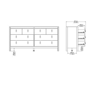 Colecția de mobilier de depozitare Madrid este deosebit de atrăgătoare datorită mânerelor din piele, care sunt foarte populare în acest moment. Cu toate acestea, dacă doriți un aspect clasic, alegeți doar mânerele rotunde din metal, care sunt, de asemenea, incluse.