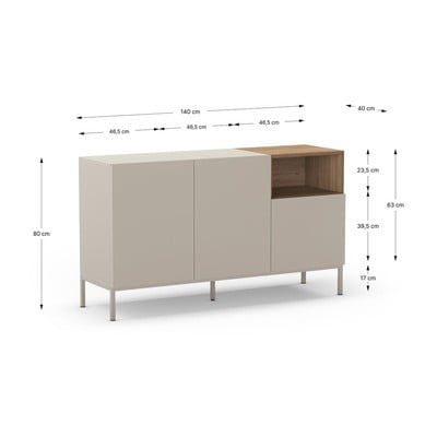 - cu aspect de lemn de stejar, din MDF, finisaj suprafață: melamină, în culoare naturală, lățime 140 cm, înălțime 80 cm, adâncime 42 cm