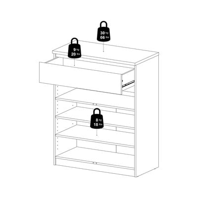 Cu dimensiuni de 80x100x40 cm, se potrivește într-o varietate de interioare. Decorul din stejar natural conferă comodei un aspect elegant. Oferă mult spațiu de depozitare datorită celor două uși, trei rafturi reglabile și un sertar în partea superioară. Designul simplu și curat subliniază funcționalitatea acestei piese de mobilier.
