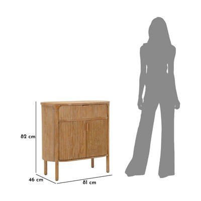 Comoda este echipată cu un sertar superior, având dimensiunile interioare de 56,5 x 34 x 12 cm, și două uși în partea inferioară, care oferă suficient spațiu de depozitare.