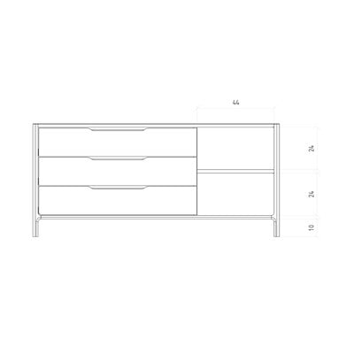 - din lemn de stejar, finisaj suprafață: tratat cu ulei, în culoare naturală, lățime 140 cm, înălțime 64 cm, adâncime 50 cm