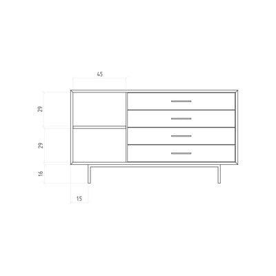 - din lemn de stejar, finisaj suprafață: tratat cu ulei, în culoare naturală, lățime 144 cm, înălțime 80 cm, adâncime 45 cm
